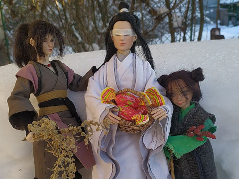А это типа Сюэ Яну не досталось подарка на день рождения, и он печально блуждает среди дерев : ))